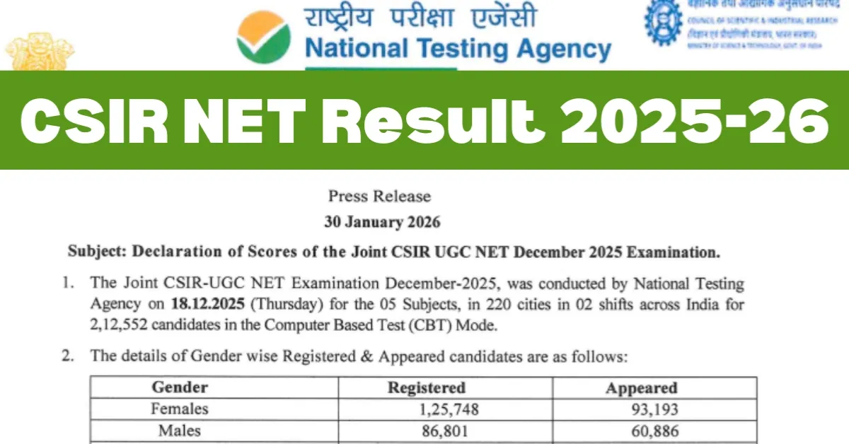 The National Testing Agency has officially announced the CSIR UGC NET December 2025 results, bringing relief and clarity to more than 1.54 lakh candidates who appeared for one of India’s most competitive national-level eligibility examinations. The results mark a crucial milestone for aspirants aiming for Junior Research Fellowship and Lectureship or Assistant Professor roles in science and technology disciplines. With scorecards now available on the official website, candidates can finally assess their performance and plan their academic or research careers accordingly.
